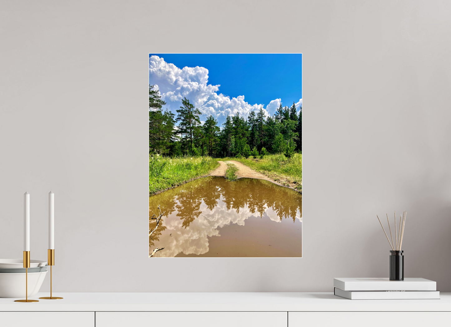 Perfect for any room where you wish to create an atmosphere of peace and introspection, "Mirror Path" serves as a stunning focal point. Let this beautiful print be your daily escape, turning your wall into a gateway to a world of perfect harmony and reflection.